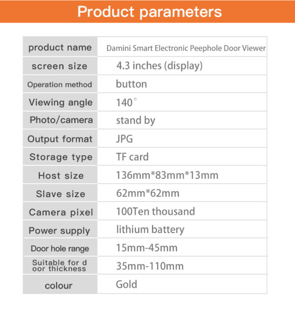 3. When someone presses the button on the peephole doorbell, the video camera mode is automatically turned on, and the door automaton rings at the same time.Specification: