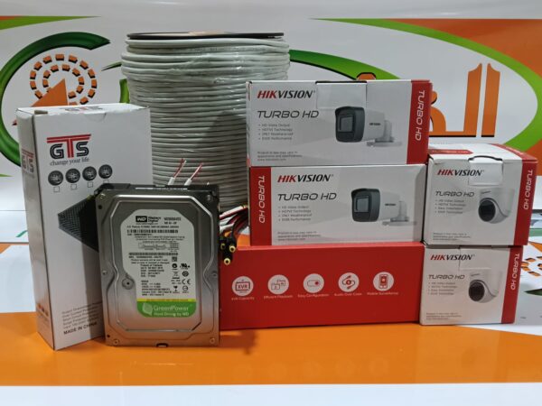 Hikvision Full Security System (2 Indoor Camera 2MP + 2 Outdoor Camera 2MP + 1080P DVR 4 Channel + 500GB HDD + 40M Cable + Power Supply + BNC)