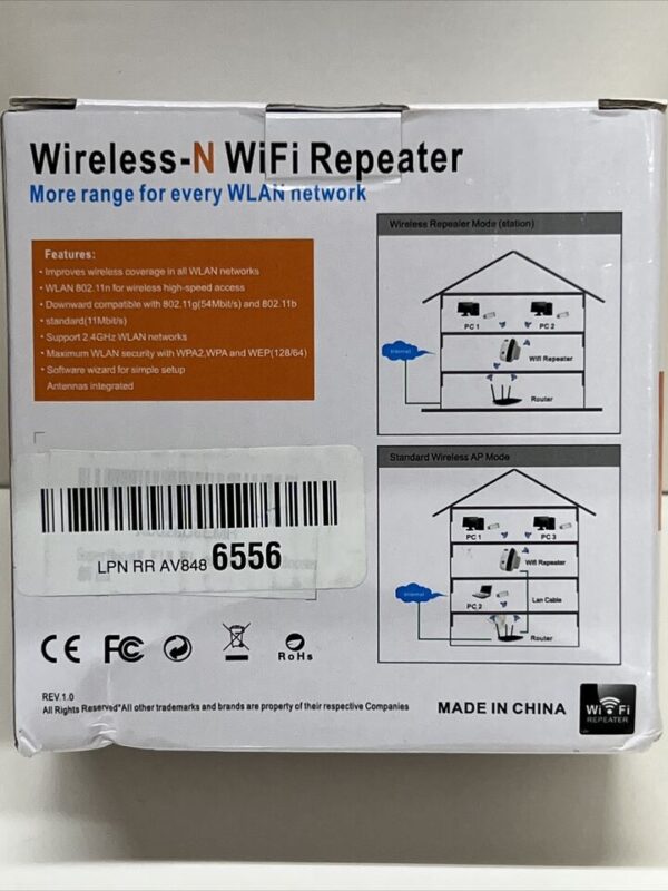 DescrizioneThe WiFi extender uses brand-new software technology, simple to set up and easy to use. Universal compatibility and easy setup: This WiFi extender can be used with any 802.11b/g/n/a wireless internet router, which means it can be used with any standard router or gateway. WISP mode/AP mode, most home users will set it up in one of two ways: 2. Range extender (it connects to your existing wireless network wirelessly and enhances/extends the signal) or 3. Access Point (it connects to the Internet or your existing network via Ethernet and then broadcasts the wireless signal (this is how you use it). Easy to set up: You can use PC/smartphone/laptop to set up. (Smartphone settings are simpler), connect to WiFi, enter the password to complete the setting. If you have a dead wireless zone in a corner of your house. Please do not place it directly in a blind spot (because it cannot receive the existing signal to expand it out). Please be sure to play in different places to place it, and you will find a great location. I put it in a location with some wifi signals, set everything up, and then walked to the quot,dead zone quot. |