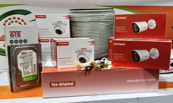 Yes Original Full Security System (3 Indoor Camera 2MP + 3 Outdoor Camera 2MP + 1080P DVR 8 Channel + 500GB HDD + 60M Cable + Power Supply + BNC)